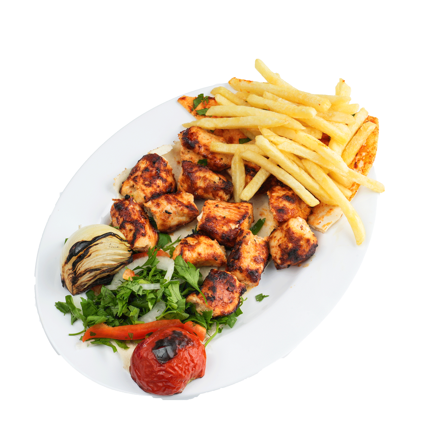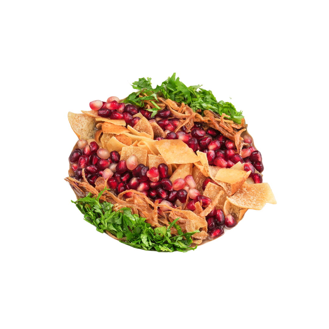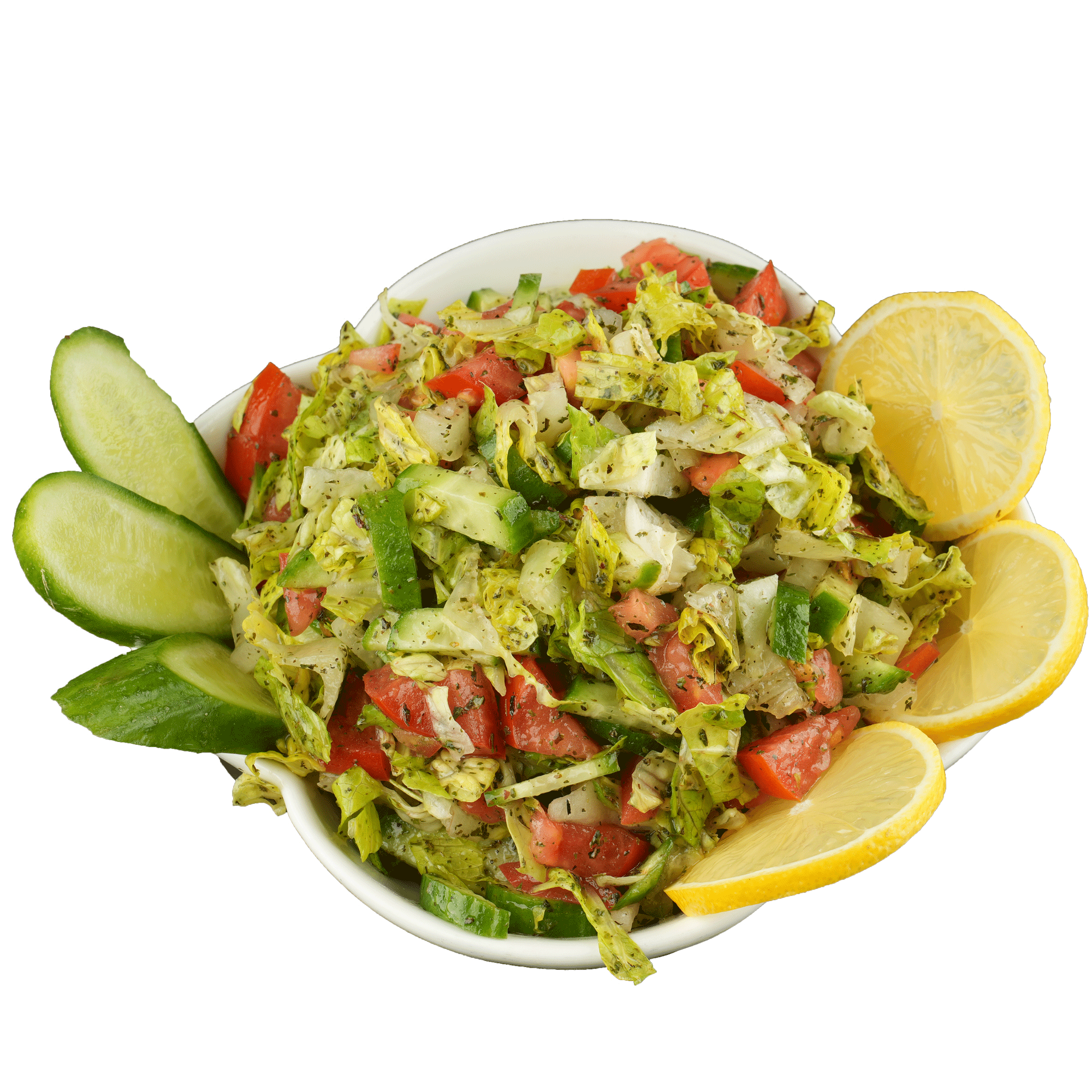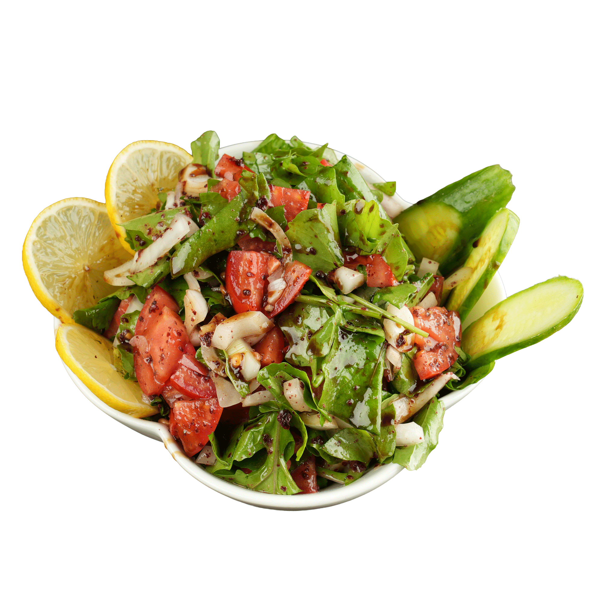 Fresh rocca leaves, tomato, and onion with sumac and a tangy lemon dressing.