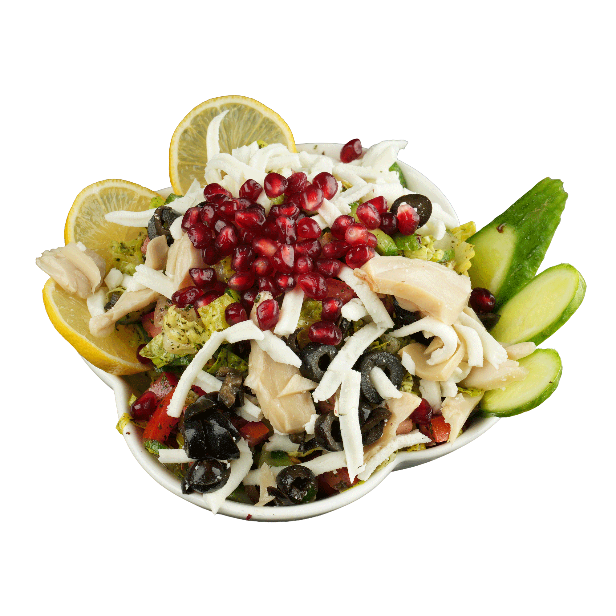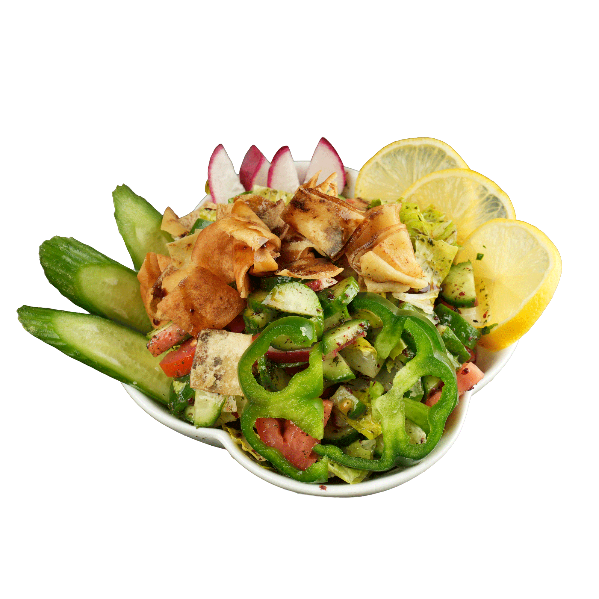 Mixed greens and seasonal vegetables topped with crispy toasted bread and sumac vinaigrette.