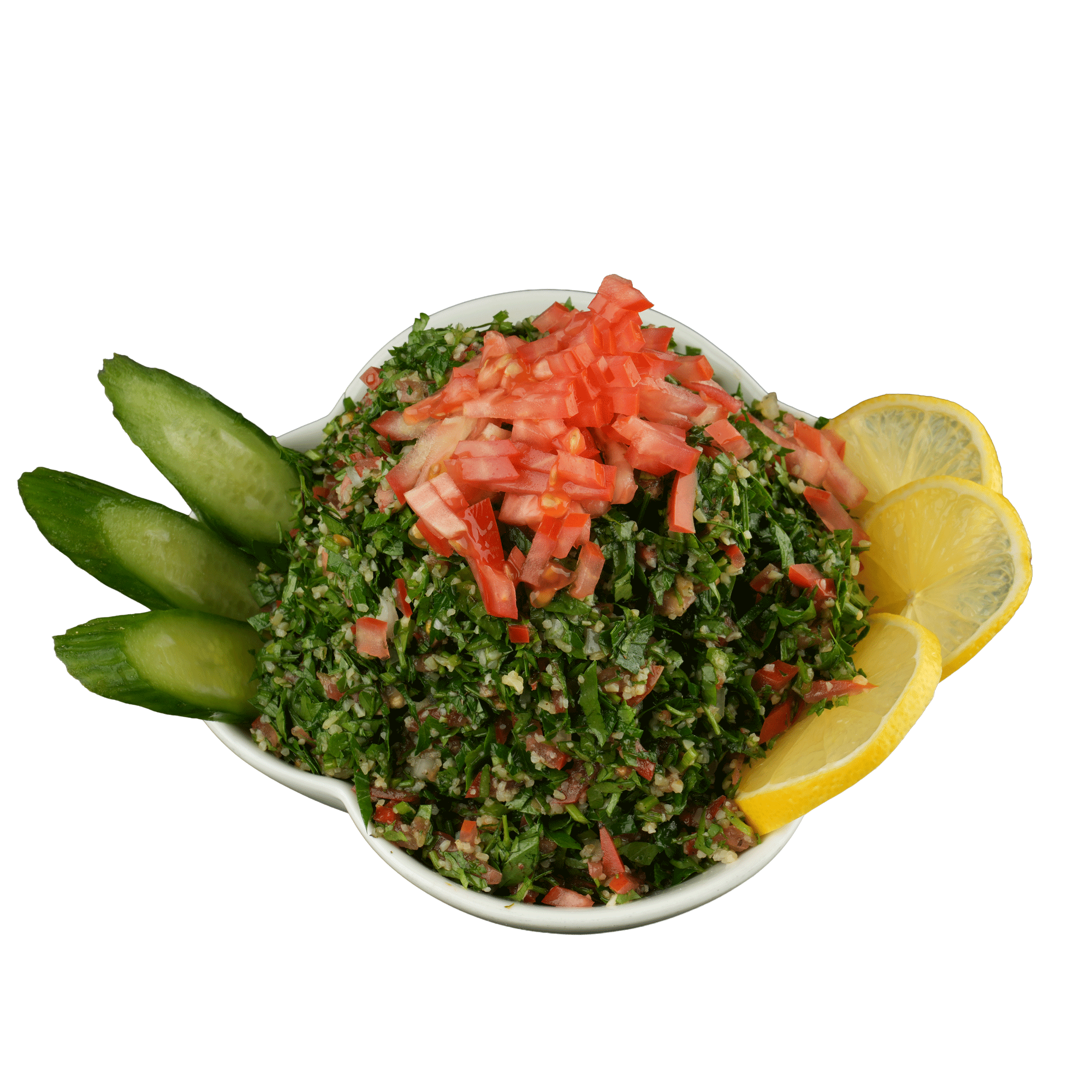 Fine parsley, tomato, and bulgur salad seasoned with mint, lemon juice, and olive oil.