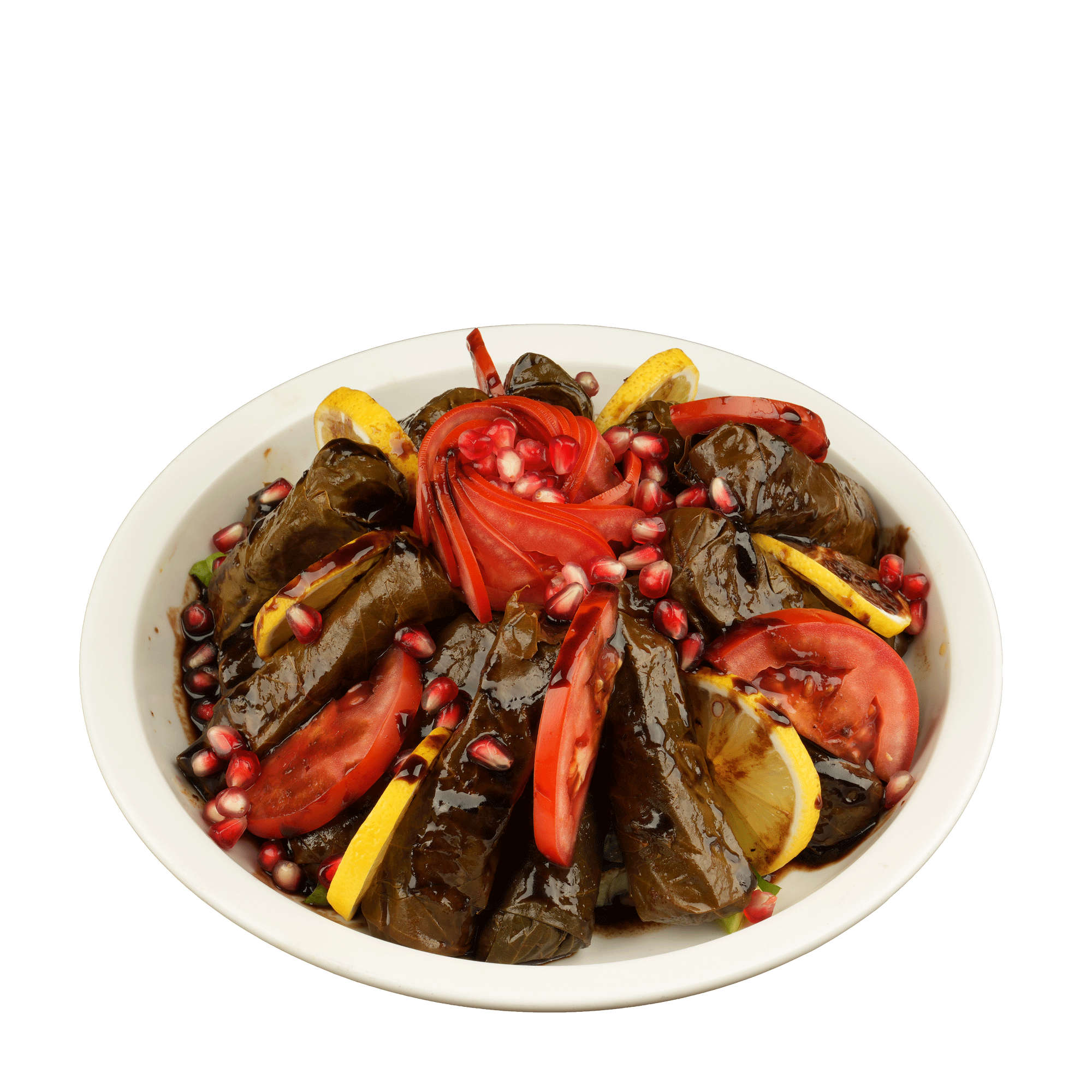 Cold vine leaves stuffed with seasoned rice and vegetables, slow-cooked in olive oil.